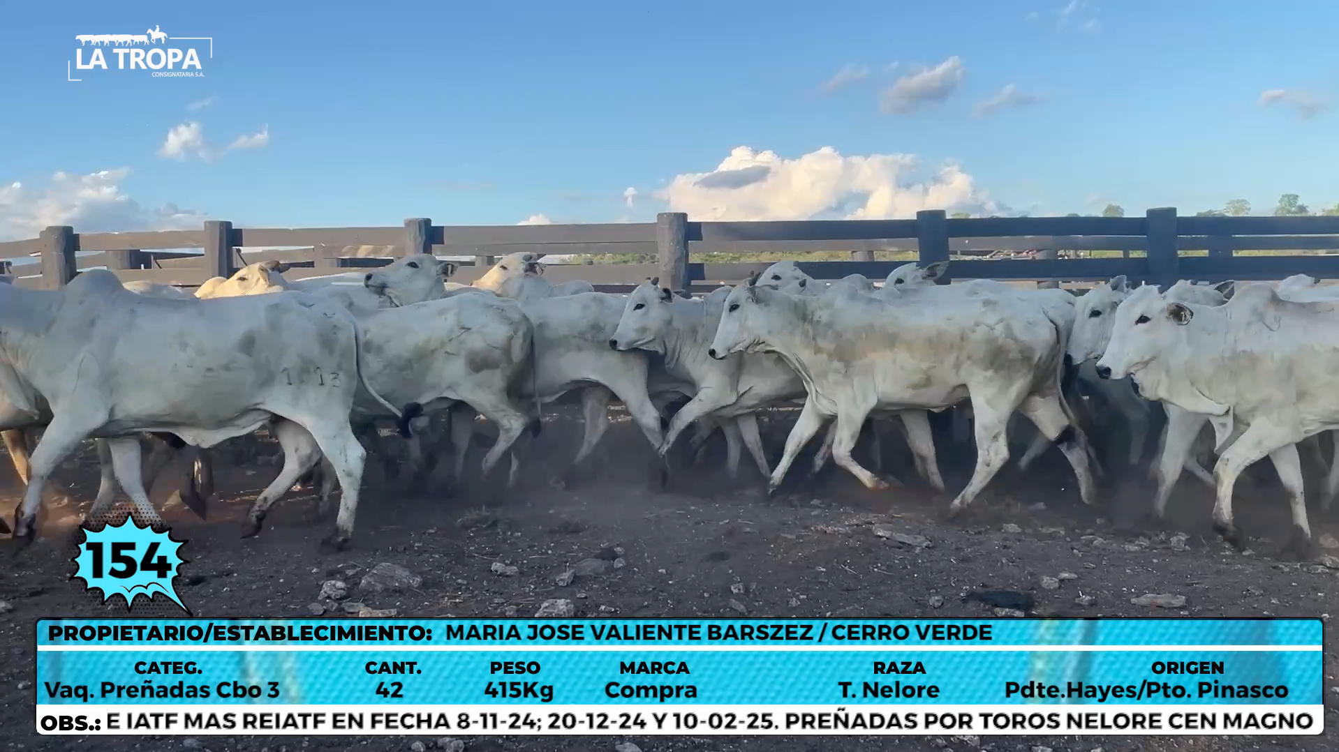 VAQUILLAS PREÑADAS DE SERVICIO DE IATF MAS REIATF EN FECHA 8-11-24; 20-12-24 Y 10-02-25. PREÑADAS POR TOROS NELORE CEN MAGNO, ESCOCES Y ENSINO DA MATIÑA. LOTE MARCA COMPRA.